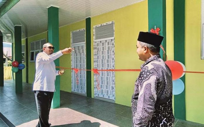 Kepala Kantor Kemenag Aceh Besar, Saifuddin meresmikan kembali tiga ruang belajar baru di MIN 8 Aceh Besar pada Senin (4/12/2024).