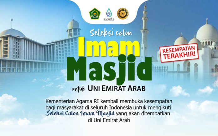 Moeslim.id | Kementerian Agama kembali membuka seleksi calon Imam Masjid untuk ditempatkan di Uni Emirat Arab (UEA), pendaftaran dibuka hingga 3 Juli 2024.