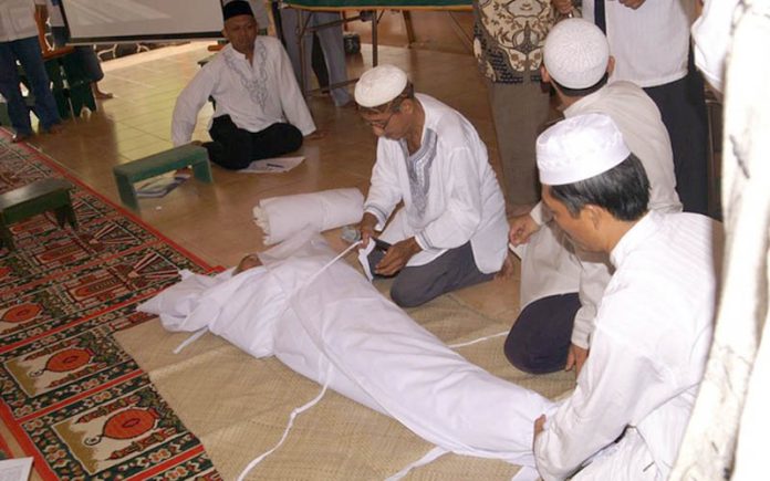 Moeslim.id | Hukum dan cara mengkafani jenazah atau mayit adalah wajib berdasarkan perintah Rasulullah Shallallahu alaihi wasallam dalam hadits tentang seseorang muhrim yang meninggal dunia karena terlempar dari untanya