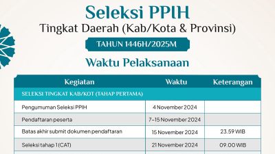 Peserta yang lolos seleksi tingkat kabupaten/kota, akan mengikuti tahap berikutnya di tingkat provinsi. CAT dan wawancara akan digelar pada 5 Desember 2024. “Hasil seleksi tingkat provinsi diumumkan pada 6 Desember 2024,” tandasnya.