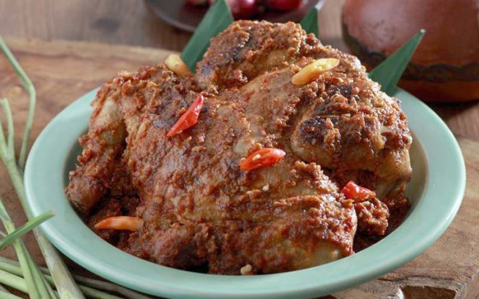 Selain itu, masakan ini juga dapat dijumpai di beberapa kedai ataupun rumah makan. Daging ayam kampung yang disajikan bersama bumbu berwarna kemerahan menjadi ciri khas tersendiri dari menu.
