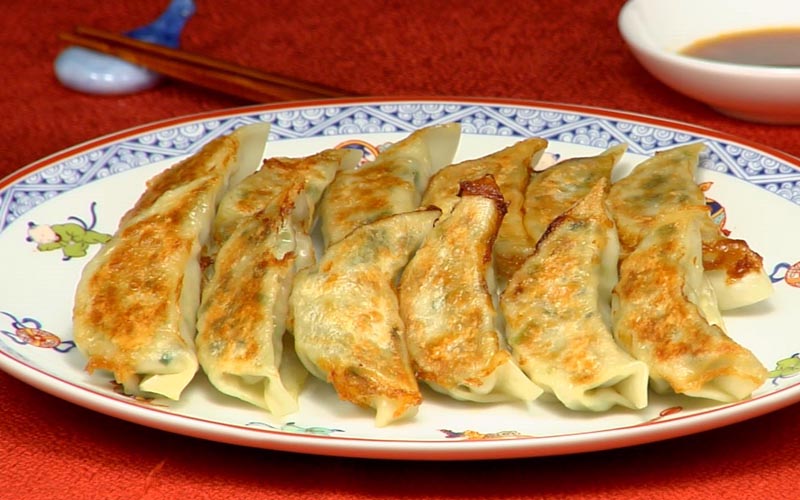 Gyoza dapat digoreng atau direbus, dan untuk rasa yang lebih nikmat, dapat disajikan dengan saus celup yang terbuat dari cuka rice vinegar.Â
