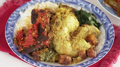 - Penyajian nasi kapau, taruh nasi putih diatas piring