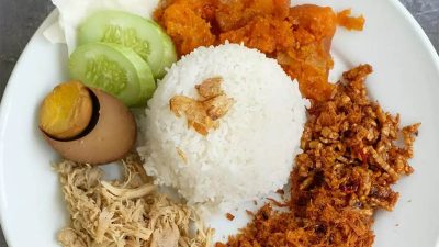 - Tata nasi langgi beserta lauk pauknya dalam piring
