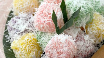 - Setelah dingin, aduk ongol-ongol di atas kelapa parut kukus