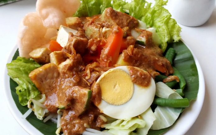 MOESLIM.ID | Salad asli Indonesia ini berasal dari Jawa yang terdiri dari sayur-sayuran yang direbus dan dicampur jadi satu, dengan bumbu kacang yang dihaluskan. Dilengkapi dengan irisan telur rebus, timun dan bawang goreng dapat menambah kenikmatan.