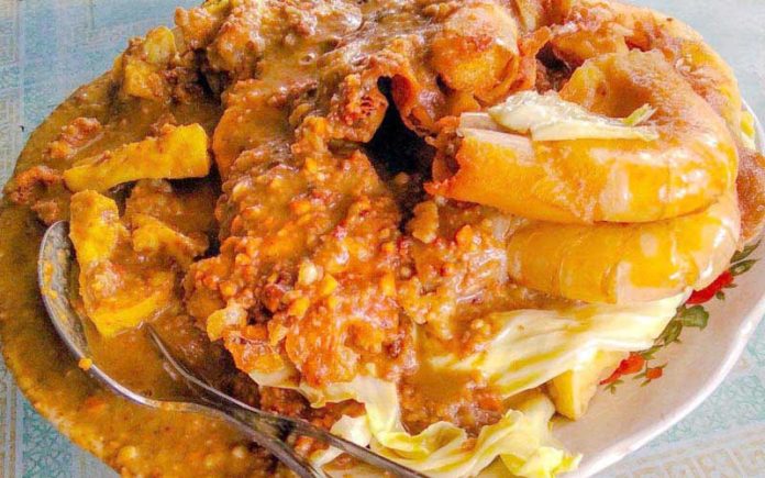 Moeslim.id | Tahu gimbal adalah makanan khas Kota Semarang yang terdiri dari tahu goreng, kubis, bawang goreng, dan gimbal udang. Gimbal udang adalah udang yang digoreng dengan tepung hingga terlihat renyah atau garing.