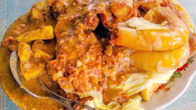 - Siram bumbu kacang diatasnya