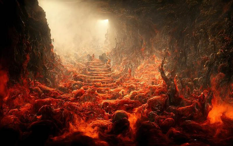 Aku berkata; “Kalian berdua telah mengajakku berkeliling malam ini. Tolong sampaikan kepadaku mengenai hal-hal yang telah kulihat”. Keduanya berkata, “Baiklah. Orang yang kamu lihat tertembus tulang rahangnya ialah pembohong. Dia menceritakan suatu kebohongan. Lalu kebohongan tersebut dibawa ke tempat lain sehingga sampai ke penjuru daerah. Dia akan mengalami hal tersebut sampai hari kiamat”.