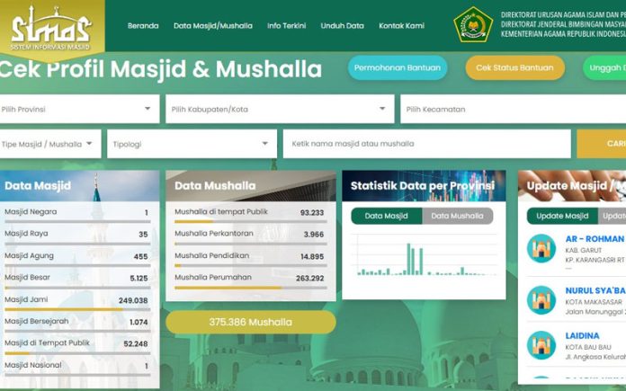 Moeslim.id | Sistem Informasi Masjid (SIMAS) kini tidak hanya menyediakan data dasar terkait jumlah dan lokasi masjid serta mushala. Selain itu, SIMAS juga menampilkan informasi terkait program bantuan.